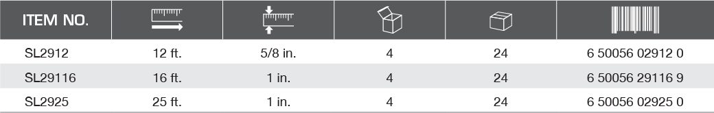 The Self Lock Speed Mark Series of tape measures is a unique line of tape measures. The series features 12-foot x 5/8-inch, 16-foot x 1-inch, and 25-foot x 1-inch. The Self Lock Speed Series features a unique self locking mechanism that allows the blade to extend smoothly as well as a push button release that insures complete control when retracting the blade. This series also provides printed fractional graduations for easy read and accurate measurements. This is the ideal measuring tool for anyone from the diy'er to a professional tradesmen. This tape measure also has a nylon coated blade for maximum durability.