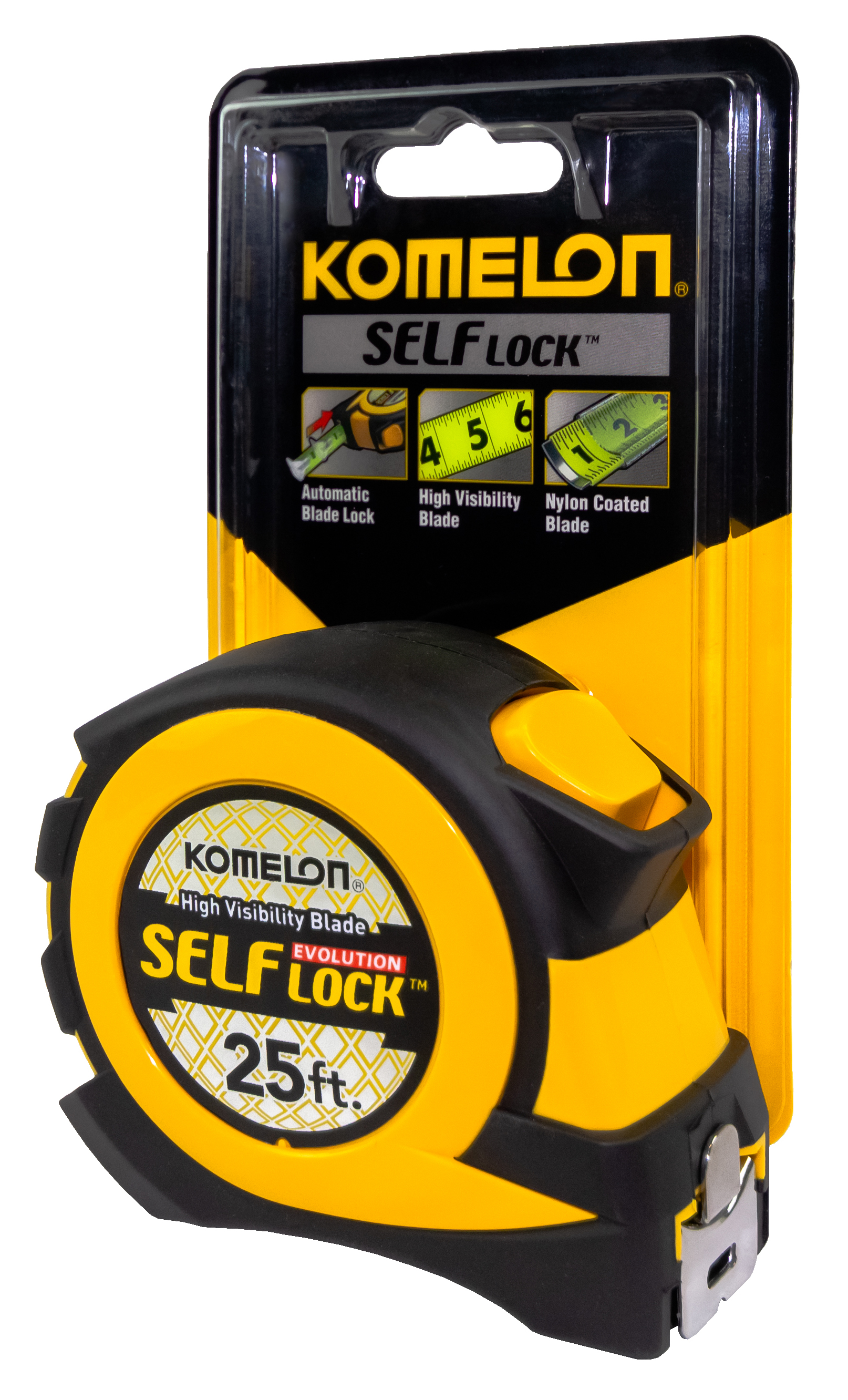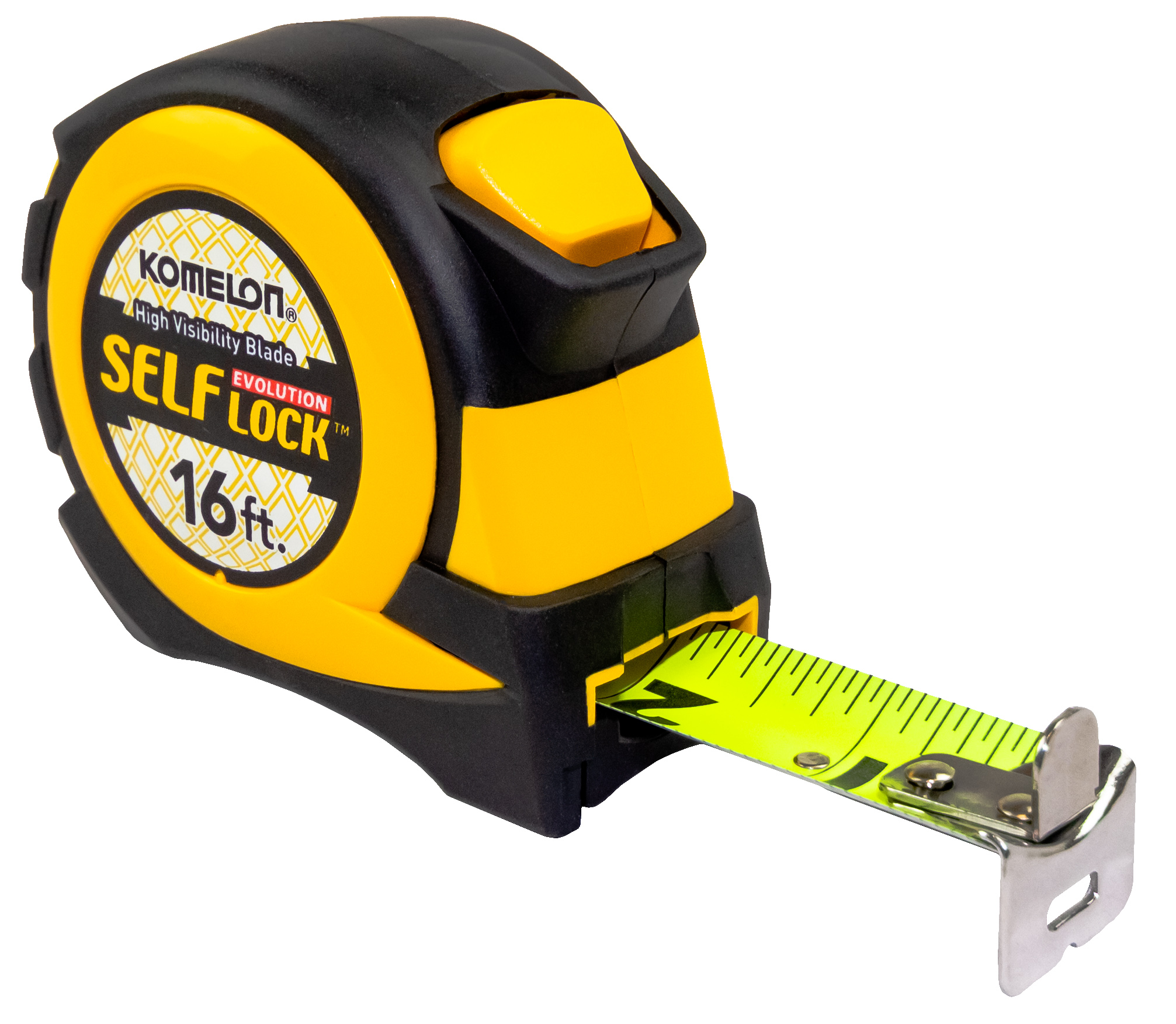 Komelon took their best selling tape series to a whole new level. The evolution is loaded with features. This self locking tape measure is equipped with our high visibility blade, a dual end hook, and back side printing on the blade.