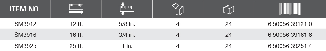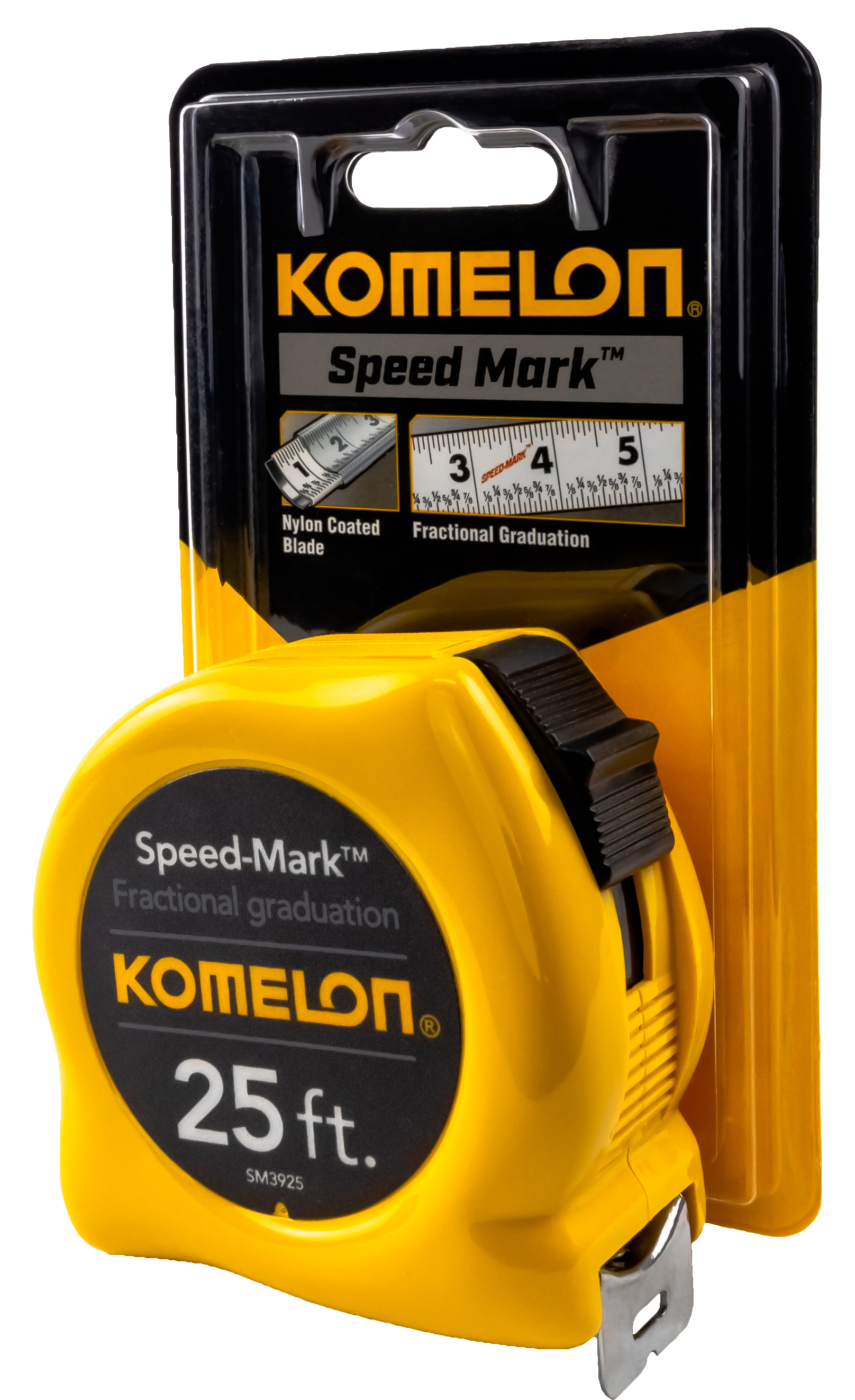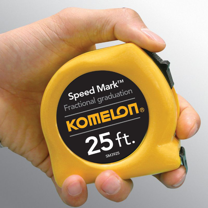 The Speed Mark is built to perform and last. This ergonomically designed Speed Mark tape can complete any job. This durable tape by Komelon was manufactured for a reason-- for daily use by professionals and to deliver when put to the test. The Speed Mark has Komelon's acrylic-coated speed mark blade. The speed mark is printed with fractional graduations and stopped and locked with a powerful slide lock. This tape screams quality and will deliver value.